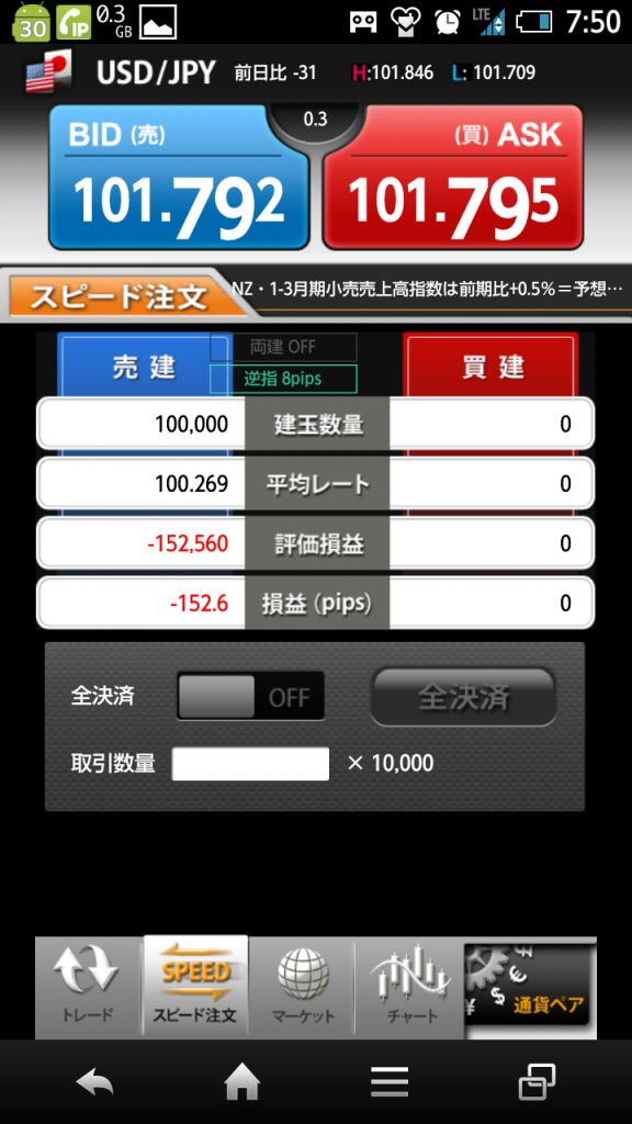ドル円一旦の天井か? FX・株・投資 X 2013.05.14 底堅いけど102.00近辺はしつこく抵抗が有った。 東京時間で利益確定の売りが多く出て、NY時間 でも下降するようだと本格調整の期待が出てくる けどダウのサポートが欲しい。 豪ドルはかなりの損切りになりましたがこれを 教訓にします。 逆張りなのに持ちすぎました。 現在のドル円のポジションはこれ