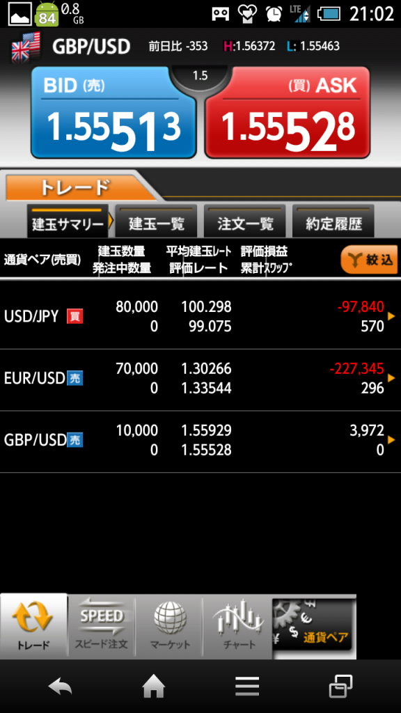 ポンドルは指標前に1枚だけショート。