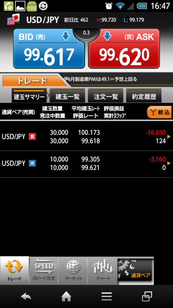 ドル円は一応損切り予定、100円までに。