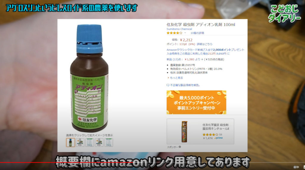 ネットでセミ対策を調べているとアグロスリン(ピレスロイド系、有効成分シペルメトリン)という農薬がセミに有効というのを知りました