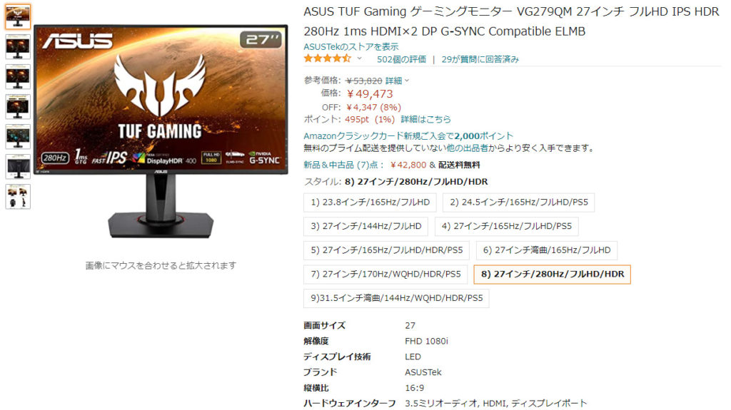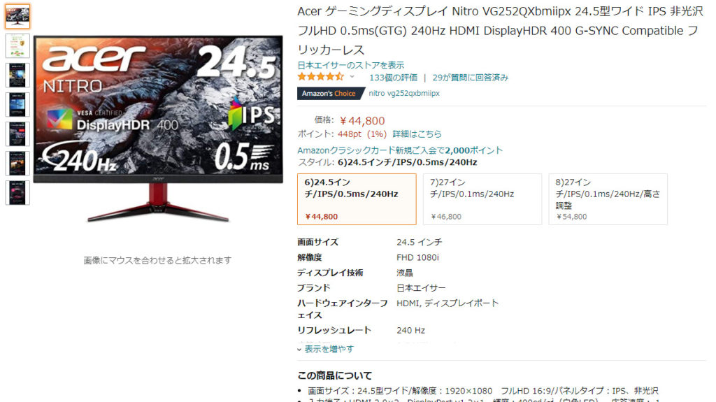 27インチだったら上で紹介したASUSのモニタ、24インチだったらAcerのこれですかね。