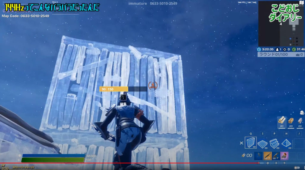 ↓FORTNITEをまずは240Hzモニタで240fpsでやってみます。