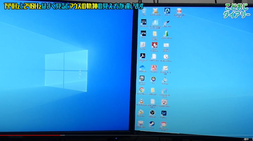 今回は27インチ同士で左のviewsonicの144Hzのモニタと右のASUSの240Hzのモニタで比較しました。