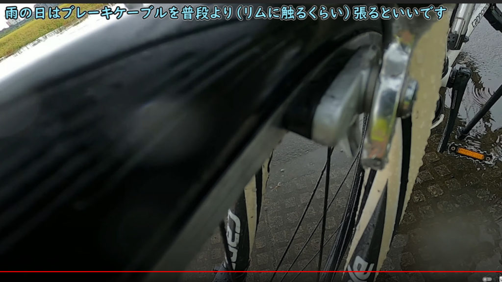 ↓あまり実戦数が少ないので豆知識と言えるか分かりませんが、雨の日は少しブレーキシューを狭めてリムに当たるくらいにした方が良いです、その方が効き始めが早く、ブレーキ開放でリムにすっていたとしても雨で抵抗がありません、であれば軽く擦らせていた方が良くないですか?