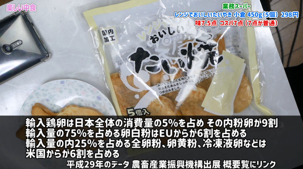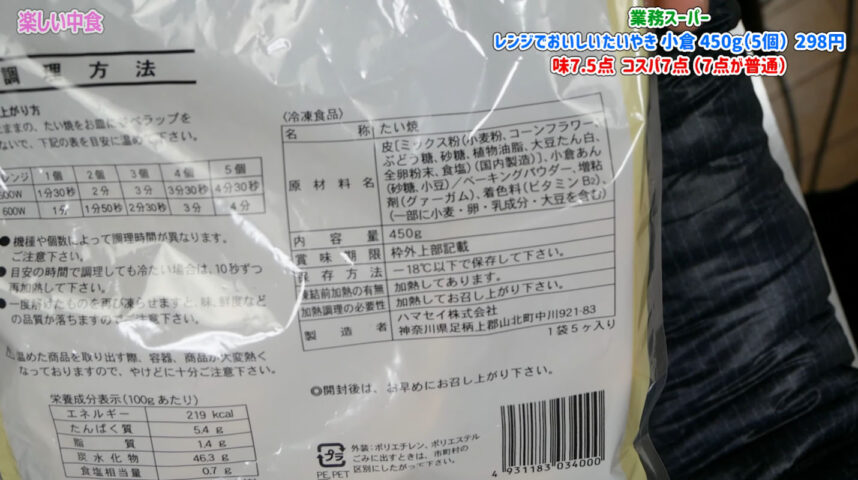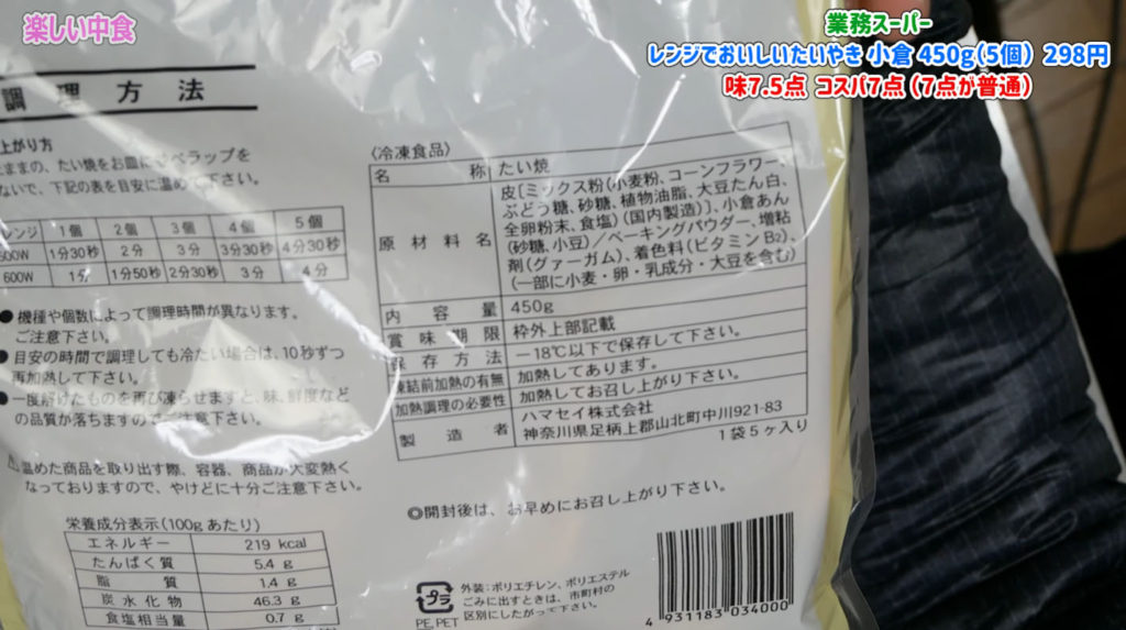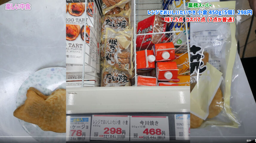 【業務スーパー】冷凍たい焼き 6個入り298円 業務スーパー X 2021.05.20 ↓この記事の動画 冷凍で保存しておいて食べたくなったら解凍して食べられるスイーツ、冷凍たい焼きを買ってきました。 原材料はこの様になっています、全卵粉末というのは初めて知りました。 安くて管理しやすいという事なんですかね? 尻尾までしっかり入ってます。 粒あんです、私は完全に粒あん派。 生地がふっくらもちもちしてコーンフラワーや玉子の風味がして美味しい。 似た商品で今川焼が有りますが、この生地の美味しさという点から考えると断然たい焼きに軍配が上がります。
