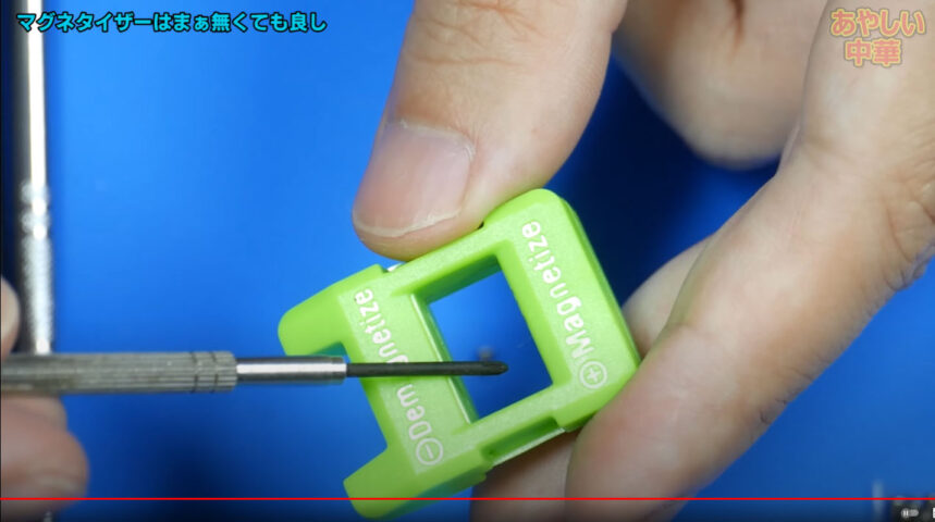 ドライバーを磁化させる事でネジを扱いやすくする為の物。