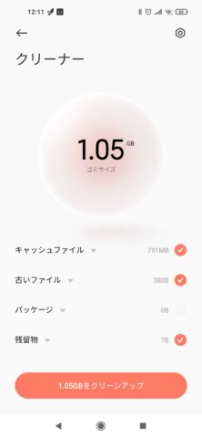 セキュリティの最初の画面に戻ってクリーナーを選択