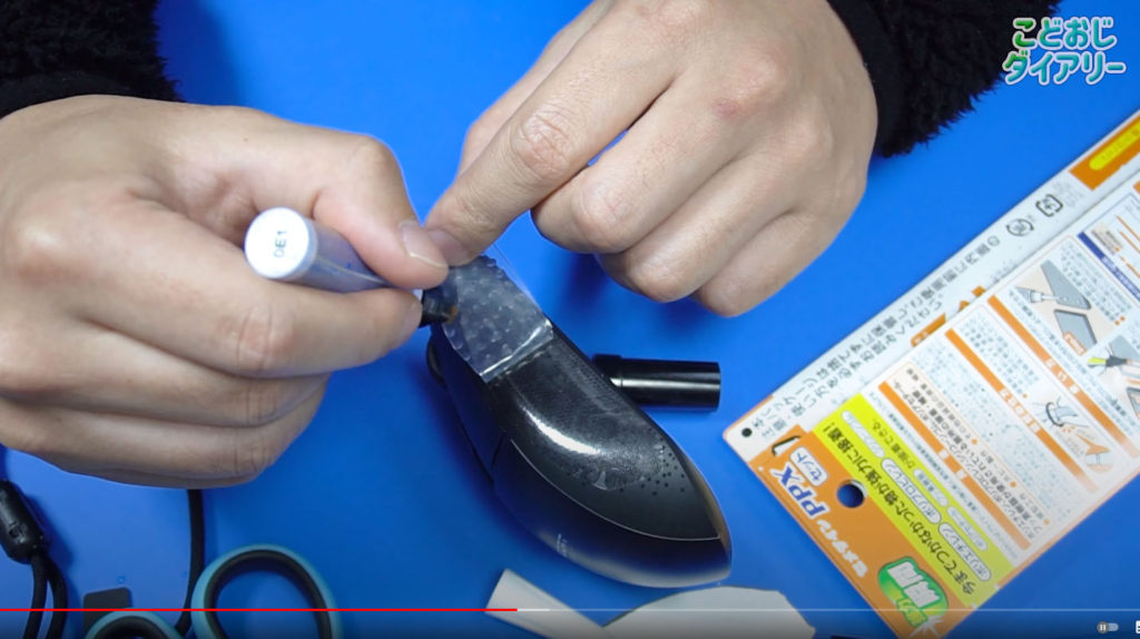 今回は面倒ではありますが、より指に食いつくシリコンでのマウス加工を説明していきます、前述の通りシリコンでも接着できる特殊な接着剤セメダインPPXを使います。