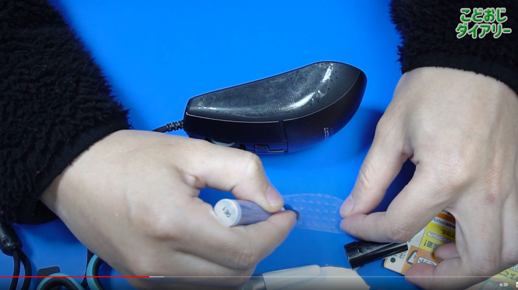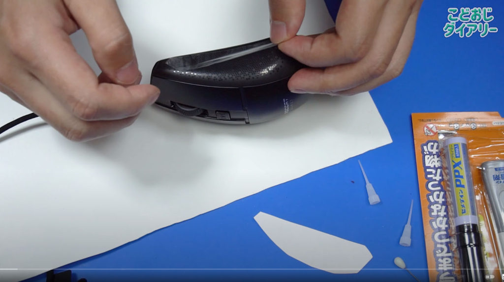 透明テープをマウスに貼ります。