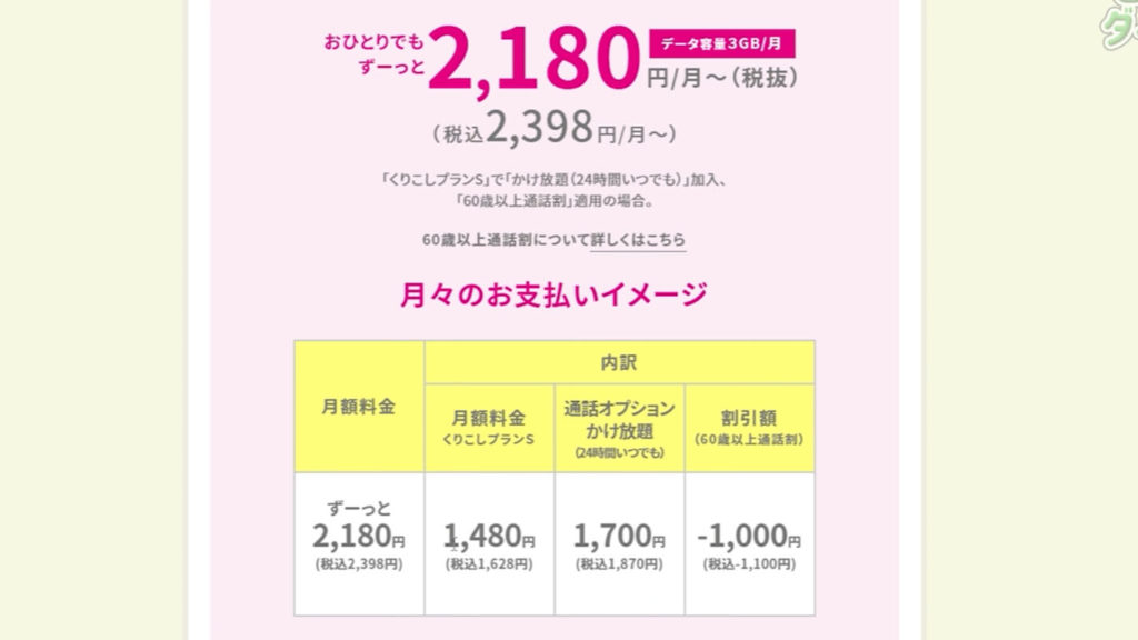 まずUQ、60歳以上の方でガンガン使う人は少ないでしょうからくりこしプランSを見ていきます。