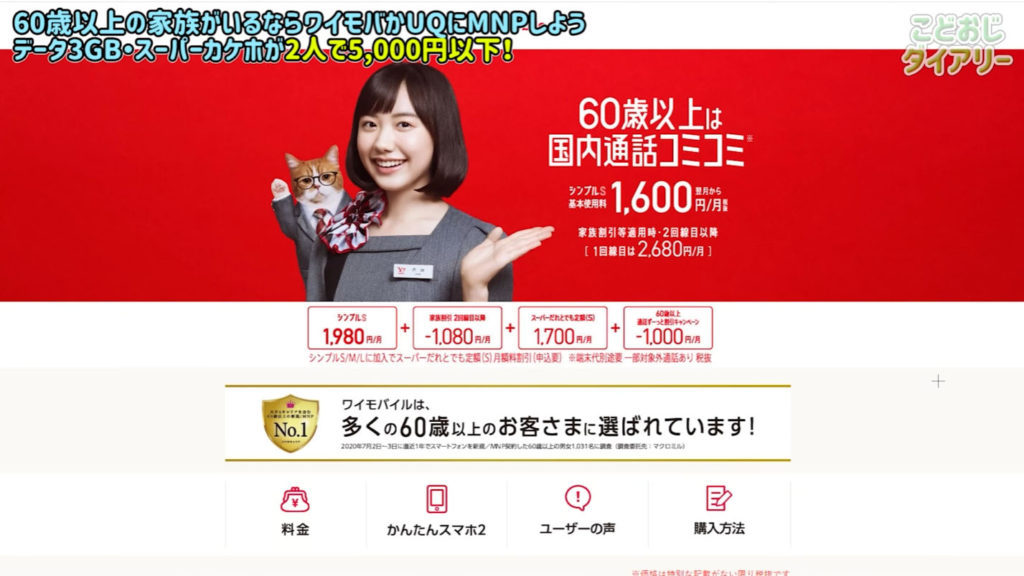 60歳以上は絶対Y!mobileかUQ mobileにした方がいいです!完全カケホ・3GB・通信が高速安定・2台で5000円以下!!