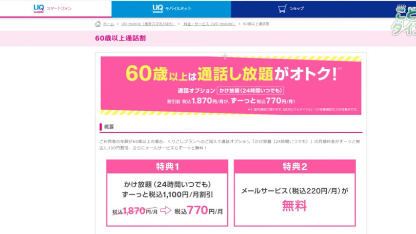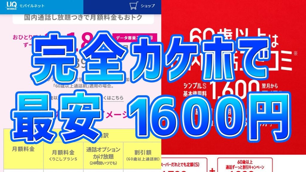 まずUQ、60歳以上の方でガンガン使う人は少ないでしょうからくりこしプランSを見ていきます。