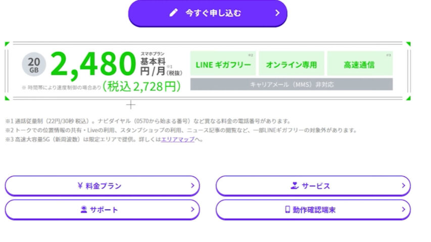 LINEMOは通信量20GBで基本料が2,480円、ここに10分縛りの通話プランが500円加算されて2,980円ですから容量の差はあれどY!mobileの方がいいでしょうね。