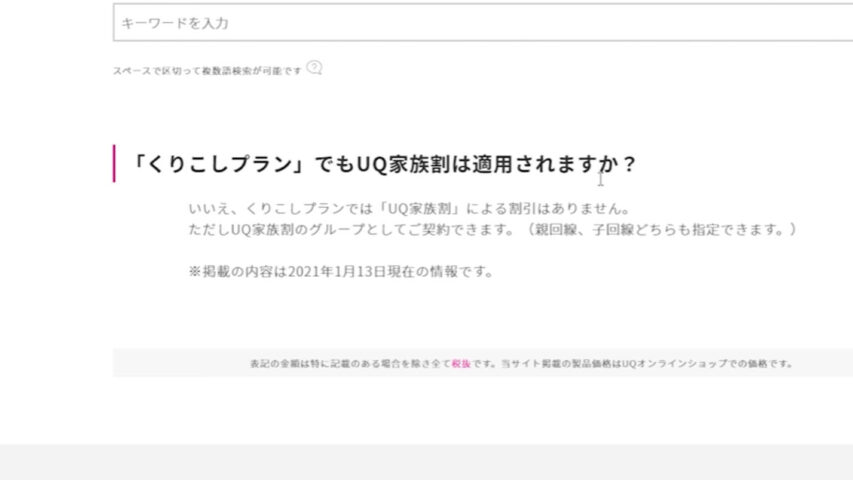 UQは家族割りが有りますがこのプランに適応して割引をする事はできません。