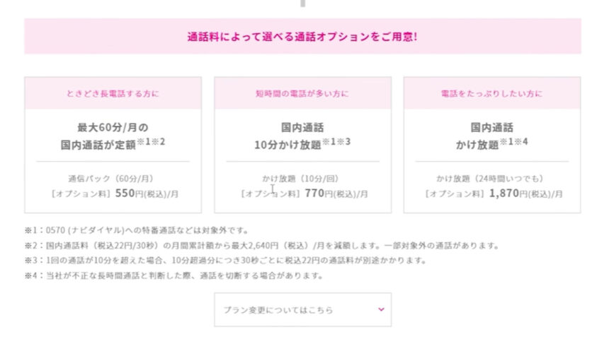 まず基本料が1,480円、そこに(10分縛りなしの)国内通話かけ放題1700円が加わります。