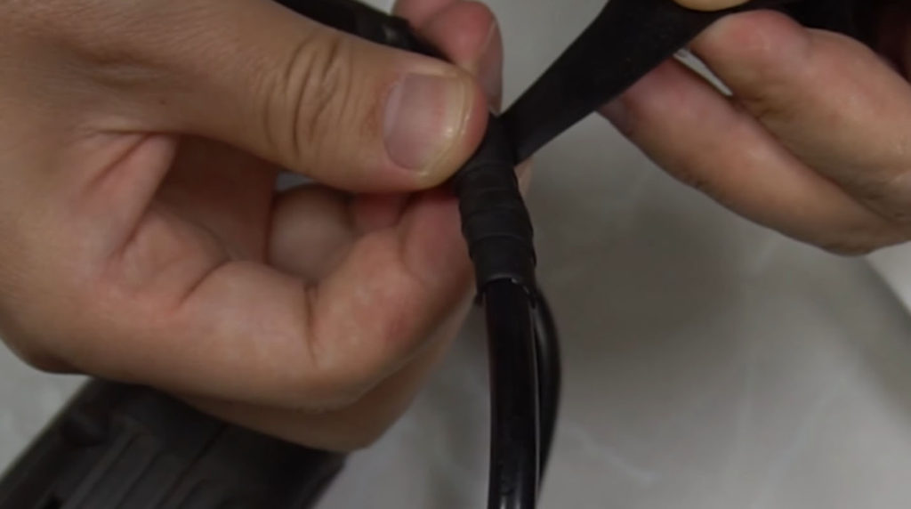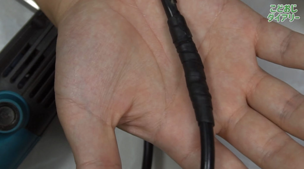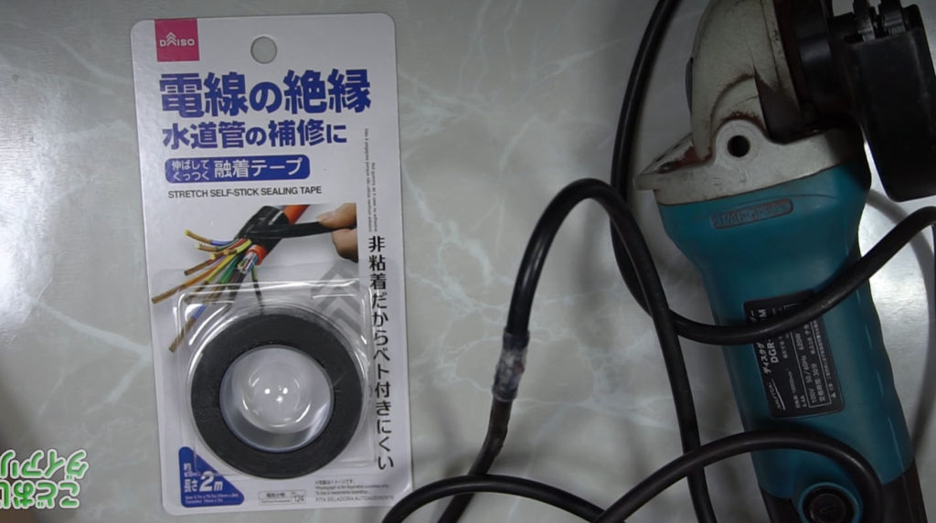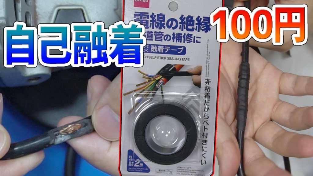 ダイソーに自己融着テープが売ってます、切れそうになっているケーブルを補修するテープでテープ自体が融着して追加で接着などする必要がないという物です。