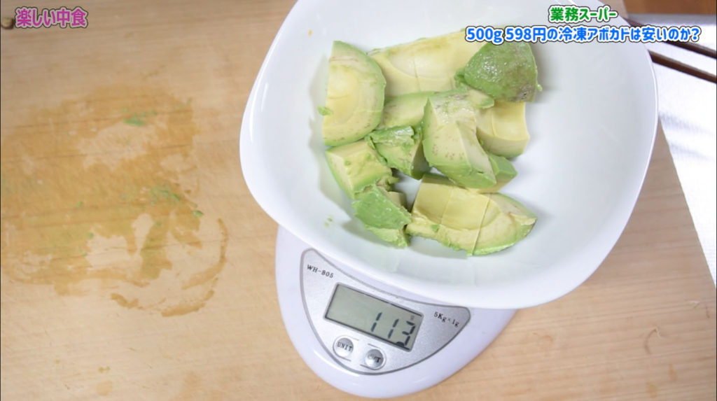 598円の冷凍アボカドは1g 1.20円