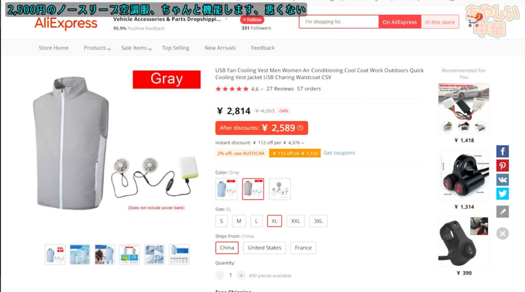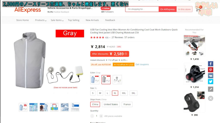 そこでインターフェースがUSB type-Aで価格競争力が有り自分の好みで容量(軽さ)を選べる汎用性のある空調服を購入しました。