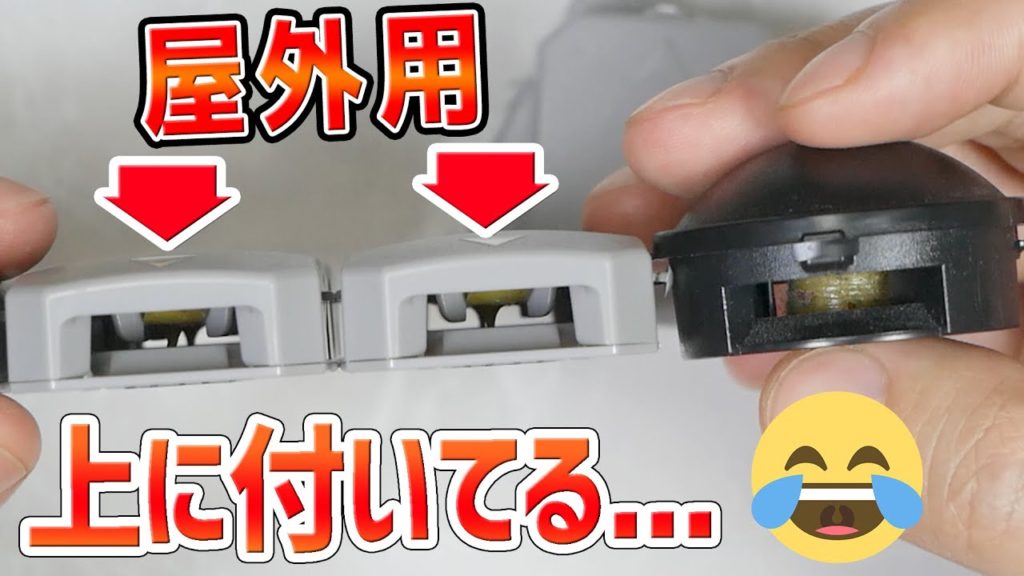屋内用との比較、当然こちらは下側に付いています