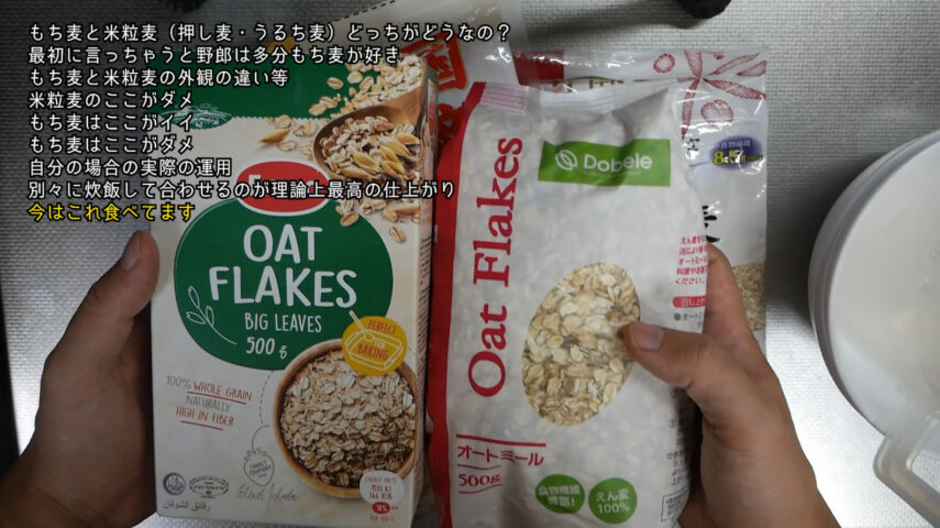 もち麦や押し麦や米粒麦を短くない期間と少なくない量を試しましたが、価格・手間・味に対するリターンが少なく結局やめてしまいました、正確に言うと続けている途中でオートミール(燕麦・オーツ・オート麦)という素晴らしい商品に(やっと)気づいてしまったからです。