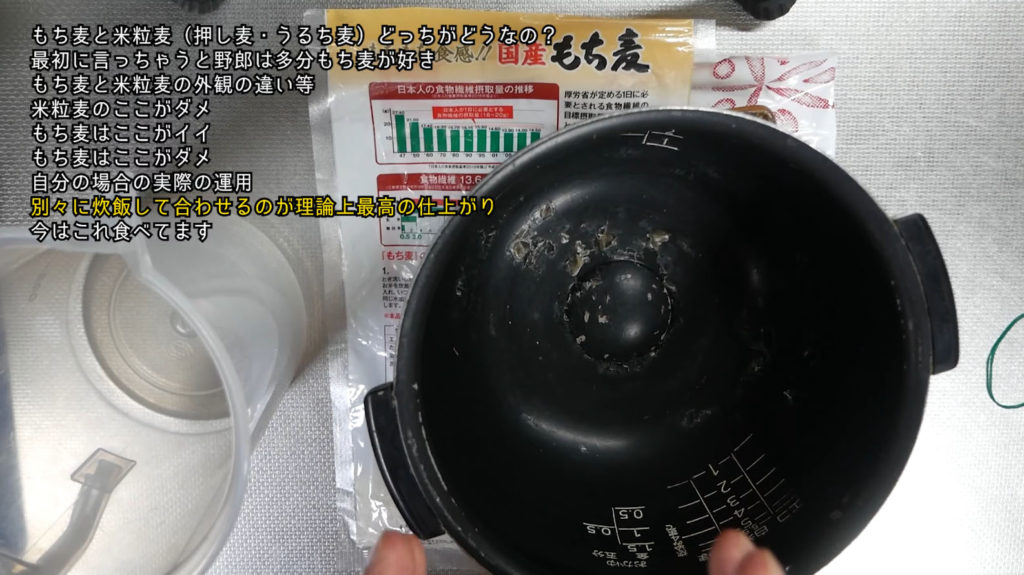 もち麦はあまり必要がありませんが、パサパサでプチっとしている米粒麦は水多めで単体で炊飯してから白米と合わせれば多少仕上がりは良くなります、ただそこまでする必要があるのかは分かりません。