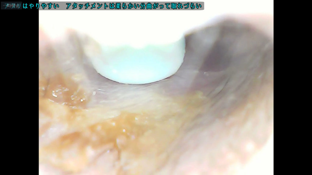 それとアタッチメントは適度に柔らかいので耳の中を傷つけにくい分曲がるので思った通り垢を取れない事もあります。