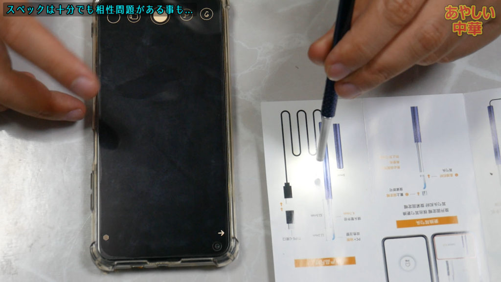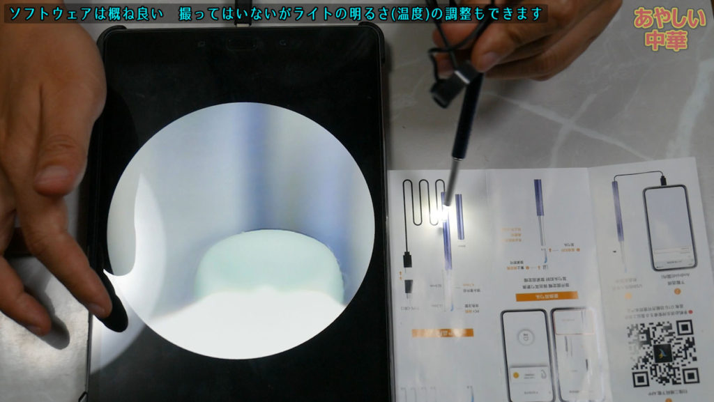 カメラの解像度は300万画素で普通、太さが3.5㎜なので小さいお子さんはどうなんでしょう、やりづらいかも、でもこの辺が一番細いサイズですからねぇ..