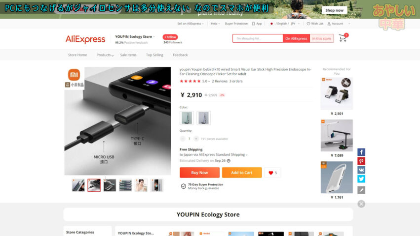 多分一番有名なメーカー、YoupinのBebirdシリーズのUSB耳かきK10を買ってみた