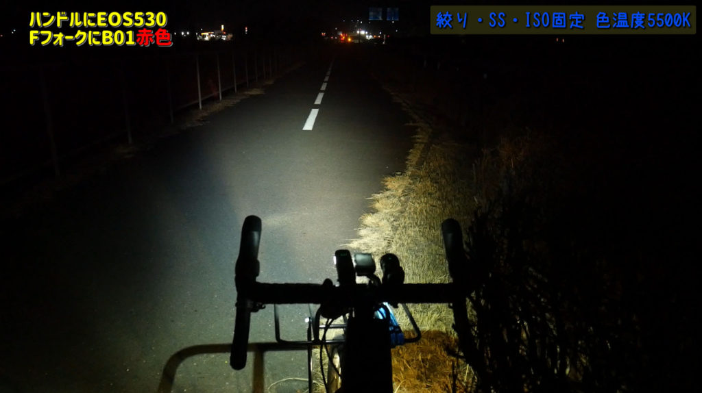 B01は基本的には良いライトです、とは言え450ルーメンだと十分な明るさとは言えずFフォークに付けるのであれば目の良い若者でなければもう1本光源が欲しくなります、そこで同じく正StVZOのEOS530との組み合わせの写真を用意したので参考にしてみて下さい。