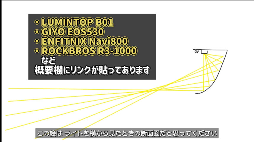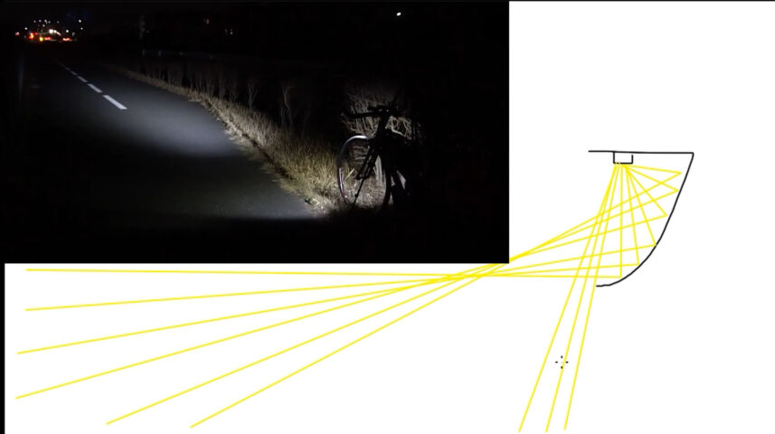 車の様に『(マルチ)リフレクタータイプ』と『プロジェクタータイプ』が有り、安価なモデルはリフレクタータイプが多く、ドイツメーカーの高価なモデルやCATEYEのGVOLTなどはプロジェクター式を採用しています(安いプロジェクタータイプも有ります)
