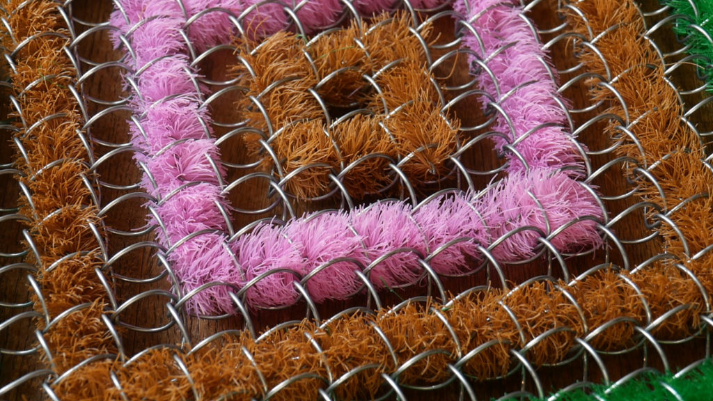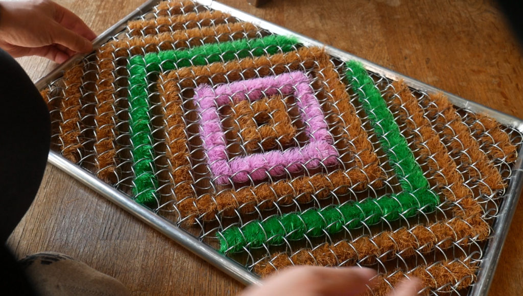 その問題を解決しているマットが殆どなく、結局この昔ながらのパーム(やし)風マットを買う事になりました、「風」と書いたのは現在は国産でこのメーカーくらいしか作っていないからです。