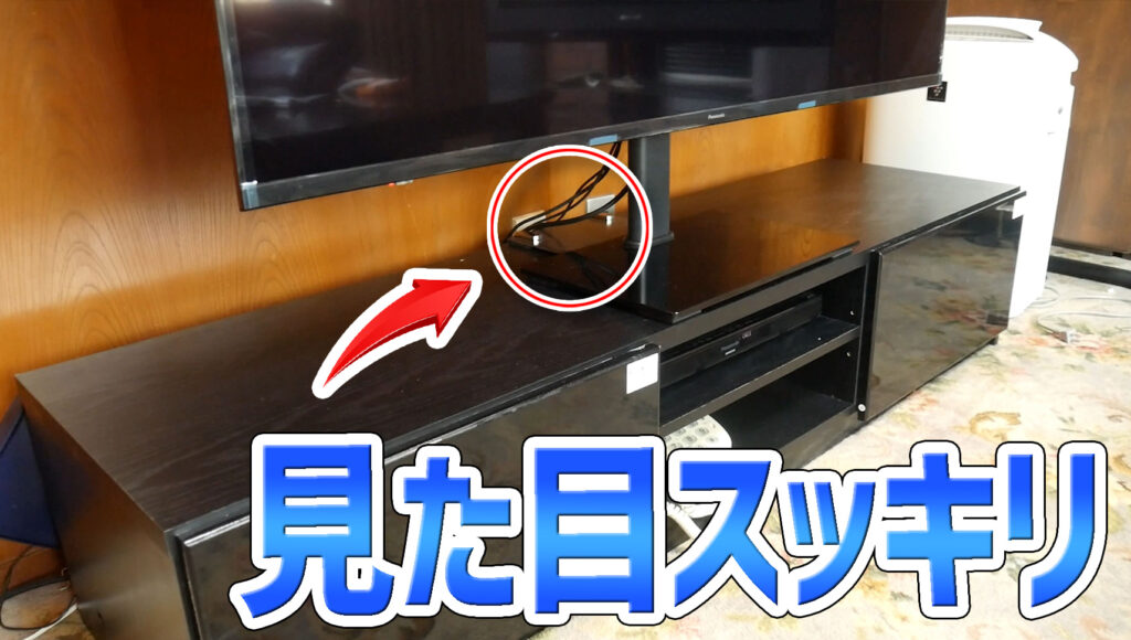 これなら見た目はスッキリしますしテレビ台が倒れるような地震(無い)でもなければテレビは倒れません。