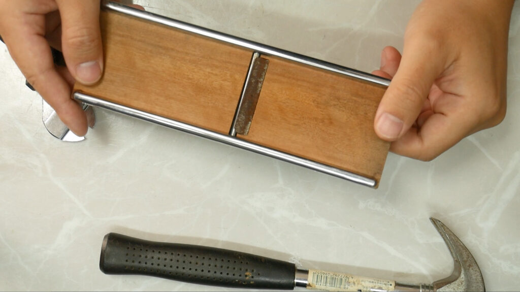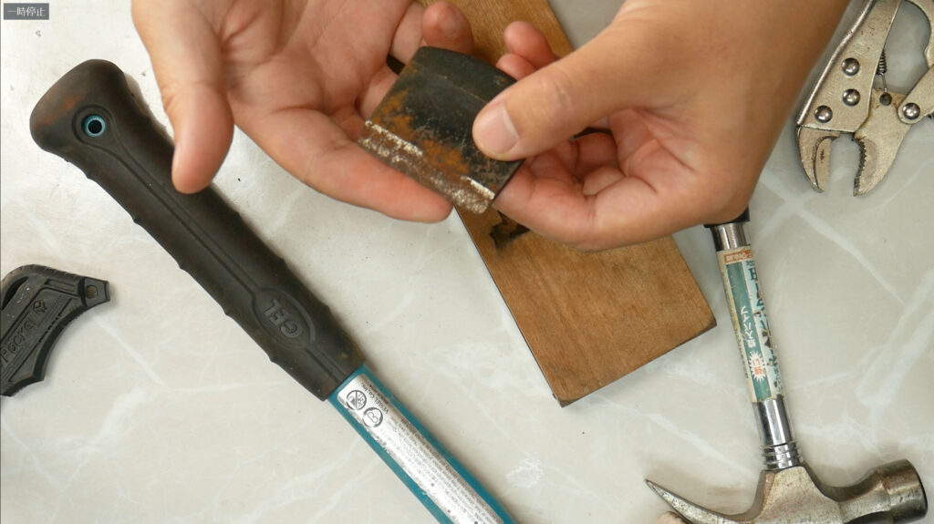 鰹節削りのお尻を叩いたのでは刃が抜けないのでバイスプライヤーで強引に抜きました