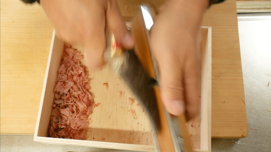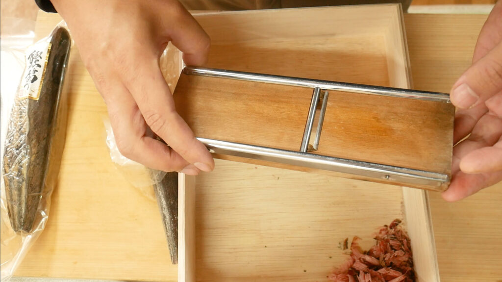 因みに最初は刃が反対に付いていて削り節が落ちなかったのですが途中で気づいて正しい方向に付けられました