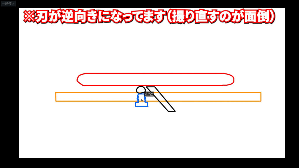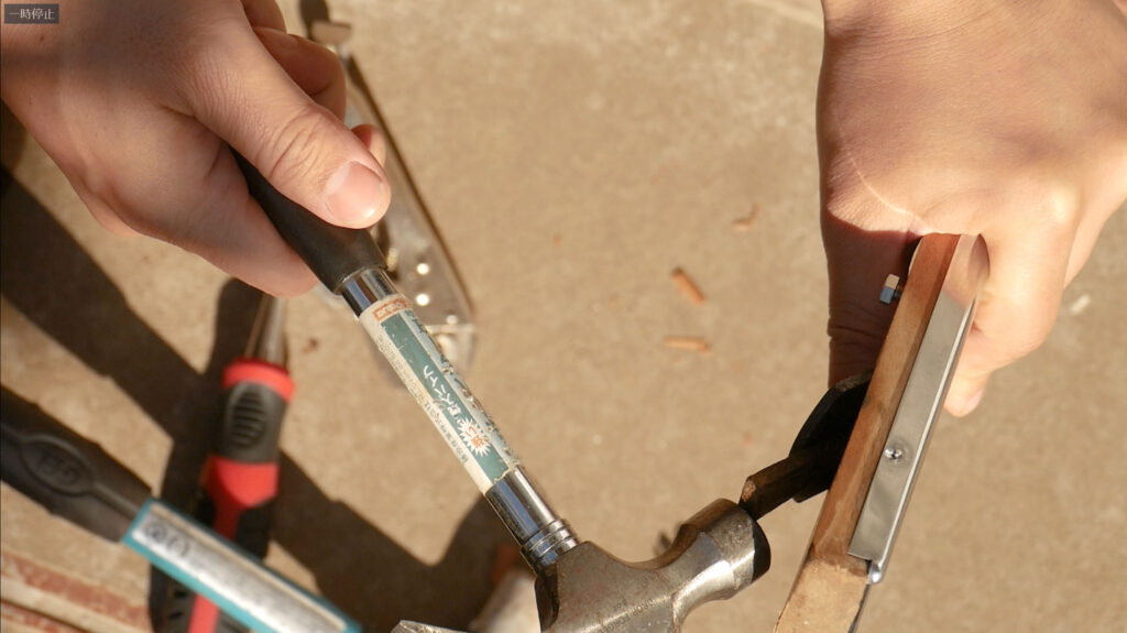 次の問題は刃が固定できるほど打ち込むと出過ぎてしまう事です(経年劣化の影響?)