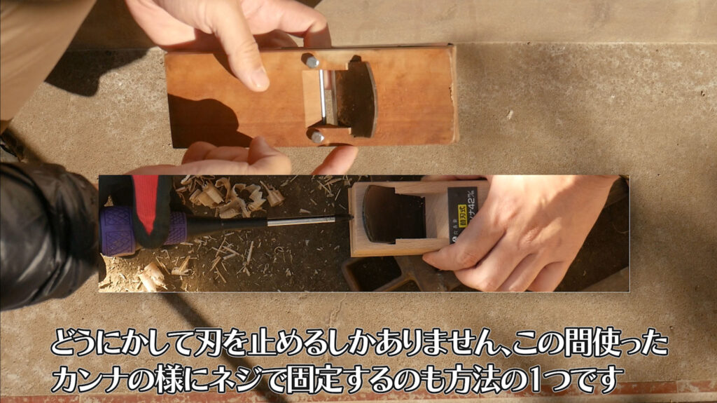 このカンナなどはネジで刃を固定できるようになっており、同様の機能を付ける必要が有ります