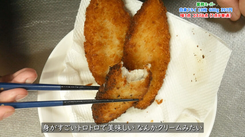 身自体とバッター液がトロトロで非常に美味しいです、安物(1枚40円)というイメージのせいで少し美味しさがスポイルされてしまうのですが、物自体は普通に美味しいです