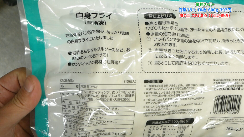 魚はブルーホワイティングです、これがパンガシウスだったら買っていません
