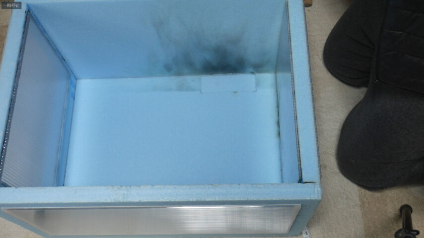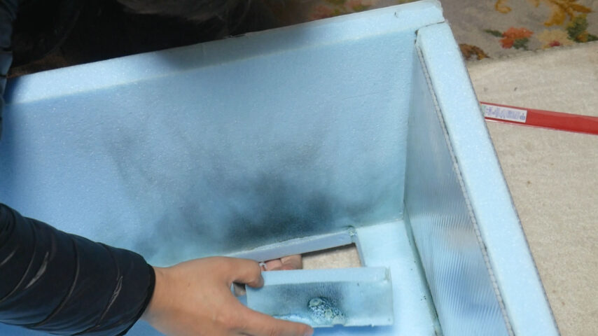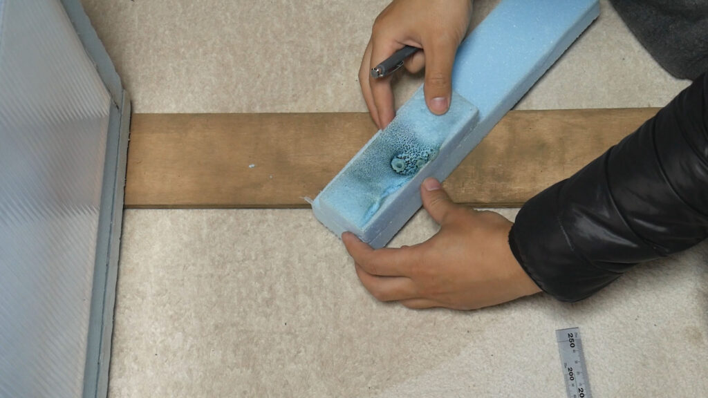 燃えて穴が開いてしまったスタイロフォームは燃えた部分を切り出して