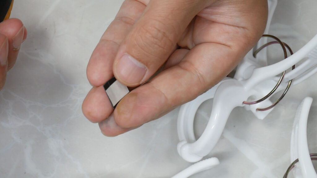 現状はこれで紐は挟めてズレないですが、夏の直射日光や熱で粘着が溶けたりゴムも軟化したりする事を考えるといつか剥がれて事故が起こりそうです、お金に困っていなかったり数が2~3個しか必要ではないという人以外は24個入のくきタッチを超お勧めします、後でデメリットとして紹介しますがプラスティックと茎が擦れても傷がつく不安も有りませんし