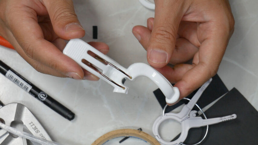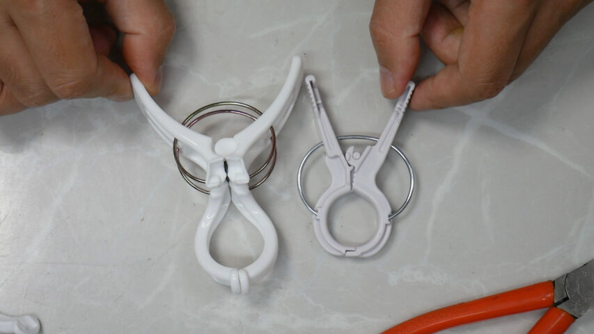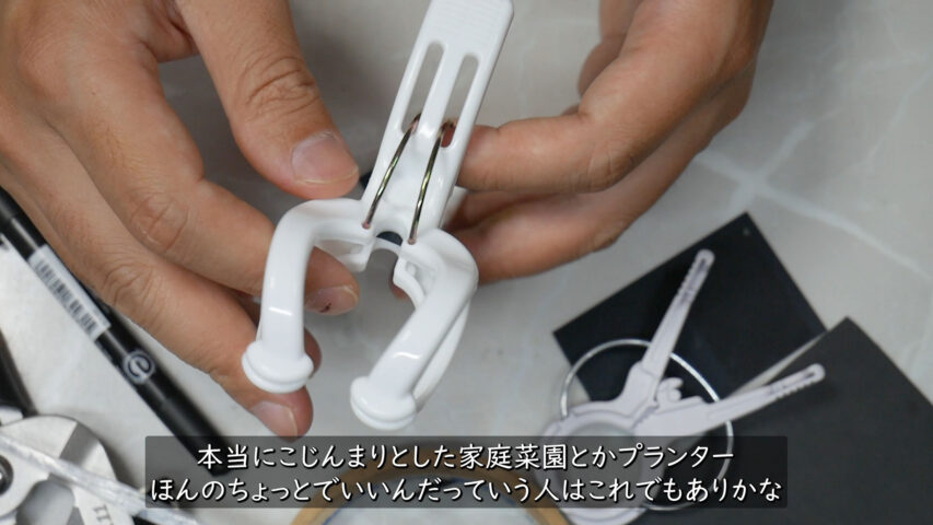 バネが2つですがバネが1つのくきタッチと挟む力は同じくらいです、100均の洗濯ばさみで作る場合はバネが2つ入ったものを使わないと力不足でしょう