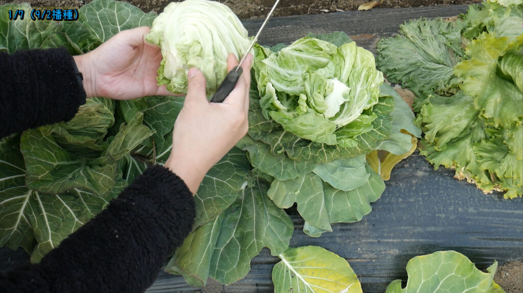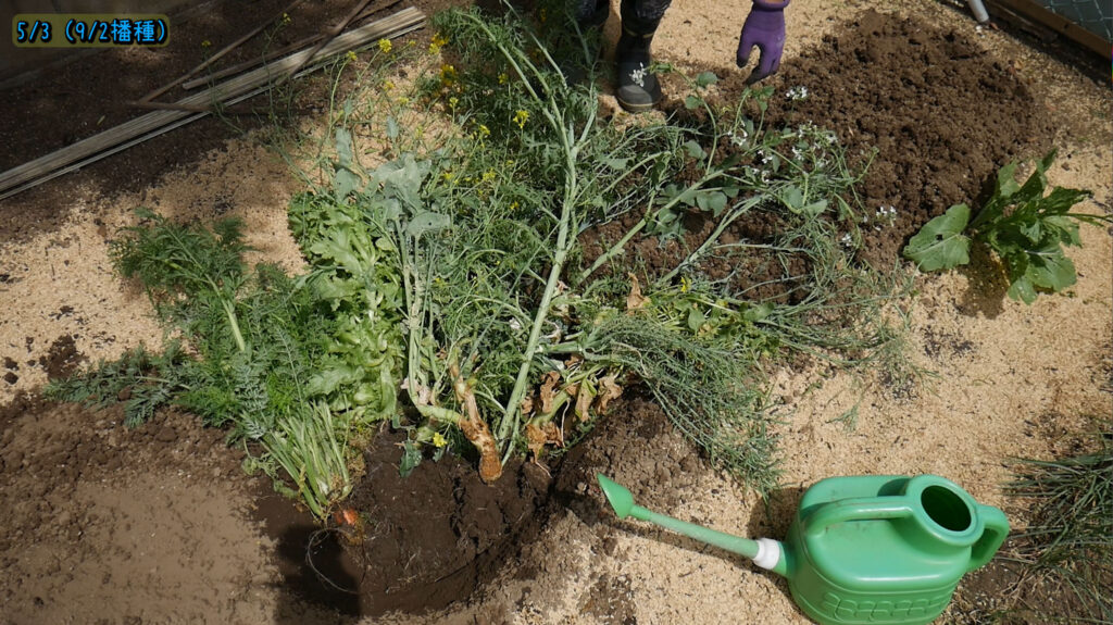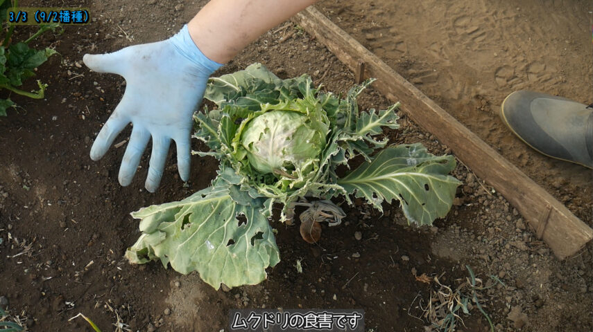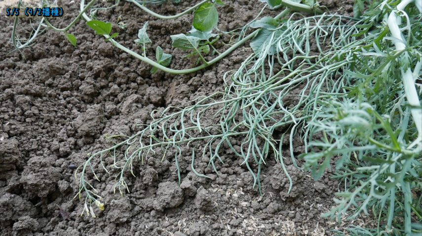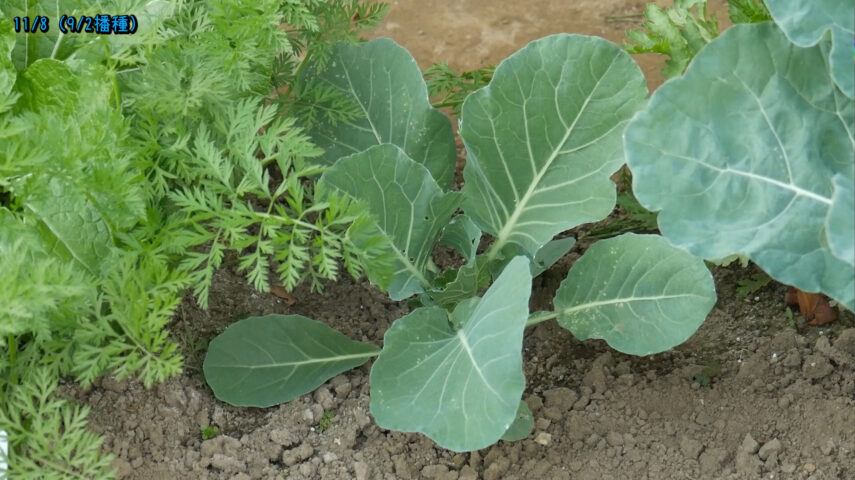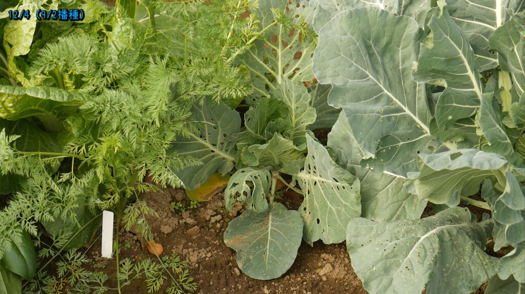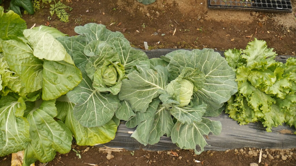 『防虫ネット有り・マルチ有り』と『防虫ネット有り・マルチ無し』で育てます、途中までは防虫ネットが無くて見やすい無し無しの写真を紹介します