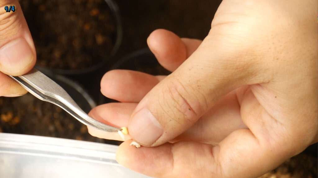 乾燥というか枯れたさや(雌しべ)を割って種を見ます