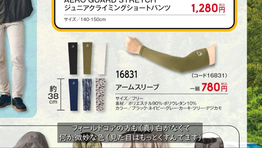 次に売ってるであろう商品がFieldCoreのアームスリーブ(16831)で780円