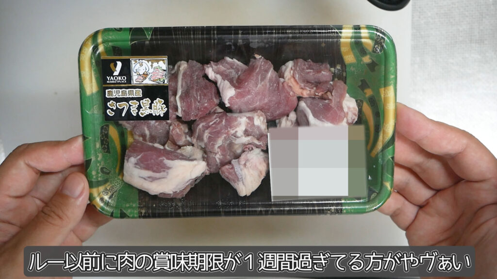 カレー以前に豚肉が賞味期限が1週間過ぎていて色がやばい