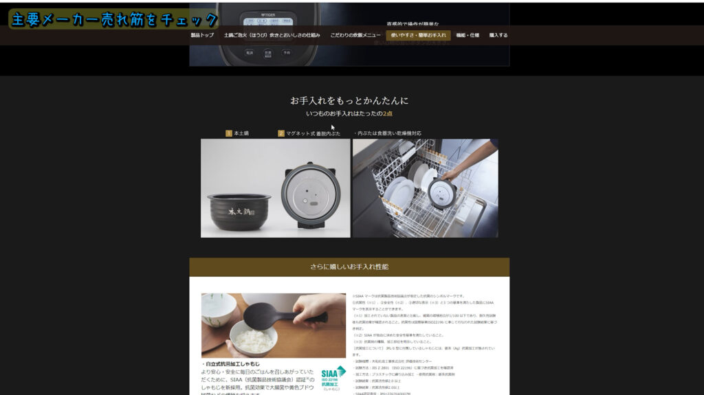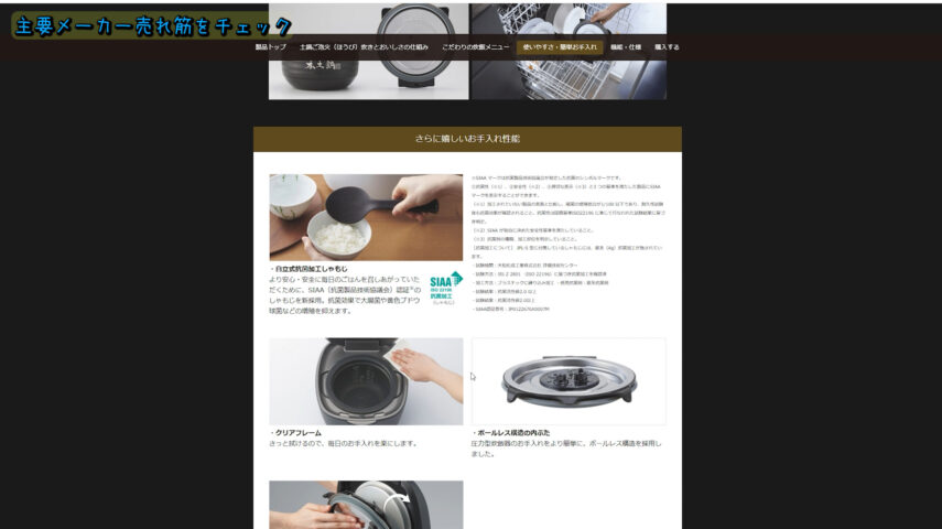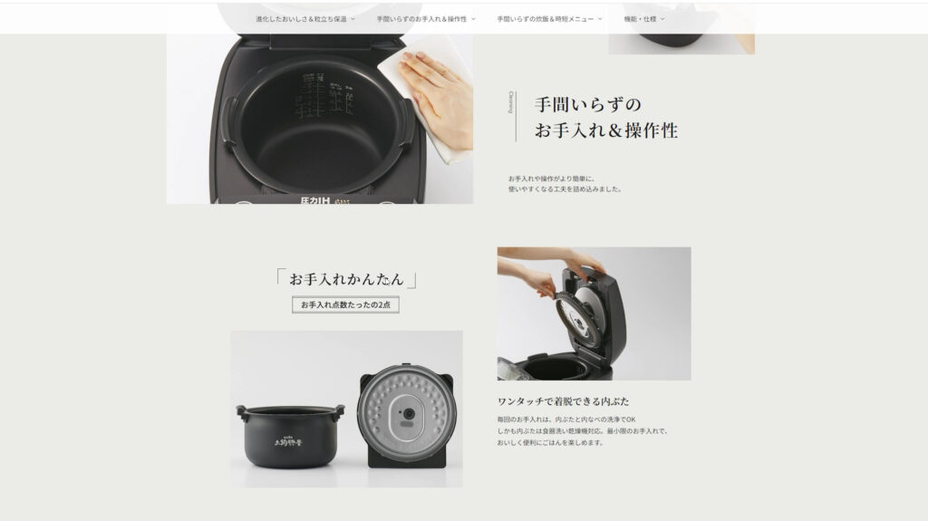 商品紹介ページを見てみましょう、「おいしく炊こう。手間は省こう。」というコピーが有りますが、実際は手間がかかります。