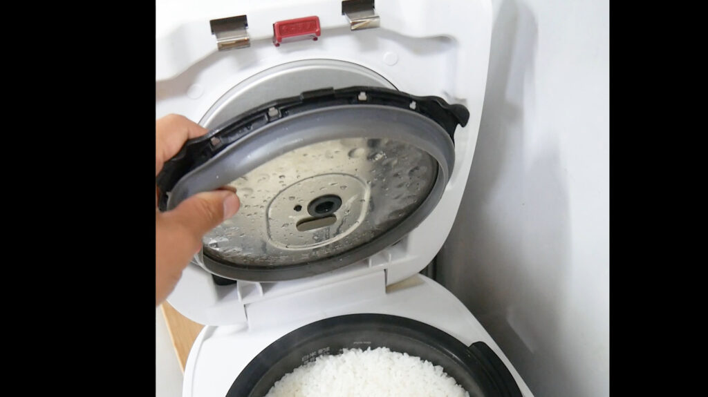 さらに上位のモデルご泡火炊き JRX-T100を見てみますと蓋に関してはご泡火炊き JPI-X100と同じように見えます、ボールが無い分汚れは溜まりづらいでしょうがいずれにせよリベット留で手が入れられない部分があります
