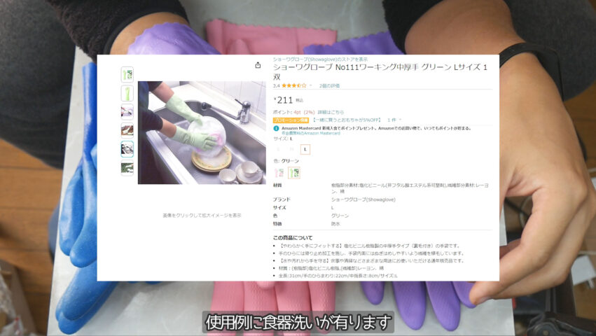 そこで出てくるのがSHOWAの中厚手のゴム手袋です、ここにはありませんがamazonの紹介ページでも食器洗いの画像が出てきているように食器洗いに適当な厚みなのかもしれません。