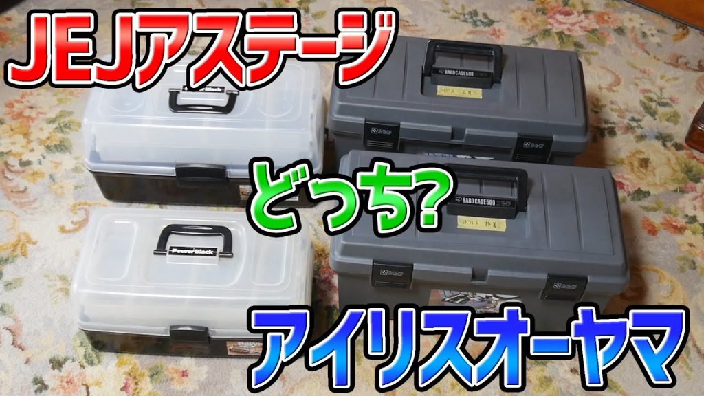 左がJEJアステージ シェフルパワーという色々なホームセンターで売っている工具箱というか収納箱
