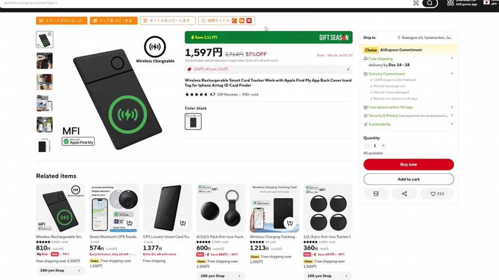 デバイス一覧: Aliexpress(エアダグ類似・カード型・充電器) Amazon(AirTag・エアダグ類似・カード型・充電器)
